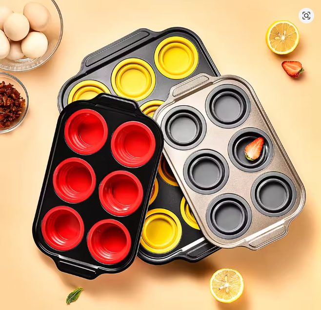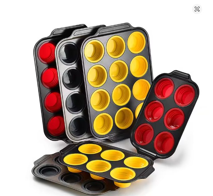 Foldable silicone cake molds, 6-piece and 12-piece press-type cake molds, easy demolding oven baking tools