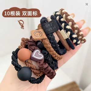 Set of 20 Coffee color One Minimalist Fashion Hair Ring and Hair Bands-Cloth, Cute and Flexible Hair Bands, Valentine’s Day Inspiration